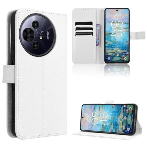 Funda de Cuero con Textura de Diamante para TCL 50 Nxtpaper 5G (Blanca)