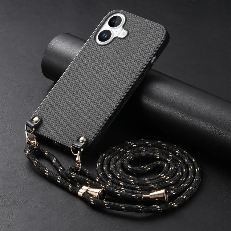 Funda de cuero con textura de fibra de carbono y correa cruzada para iPhone 17 (negro)