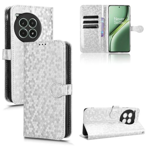 Funda de Cuero para OnePlus Ace 3 Pro con Textura de Puntos en Panal (Plateada)