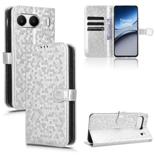 Funda de Cuero con Textura de Puntos Panal para OnePlus Nord 4 5G (Plateada)
