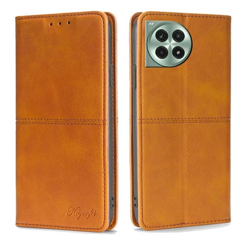 Funda de Cuero Textura de Vaca OnePlus Ace 3 Pro 5G Cierre Magnético (Marrón Claro)