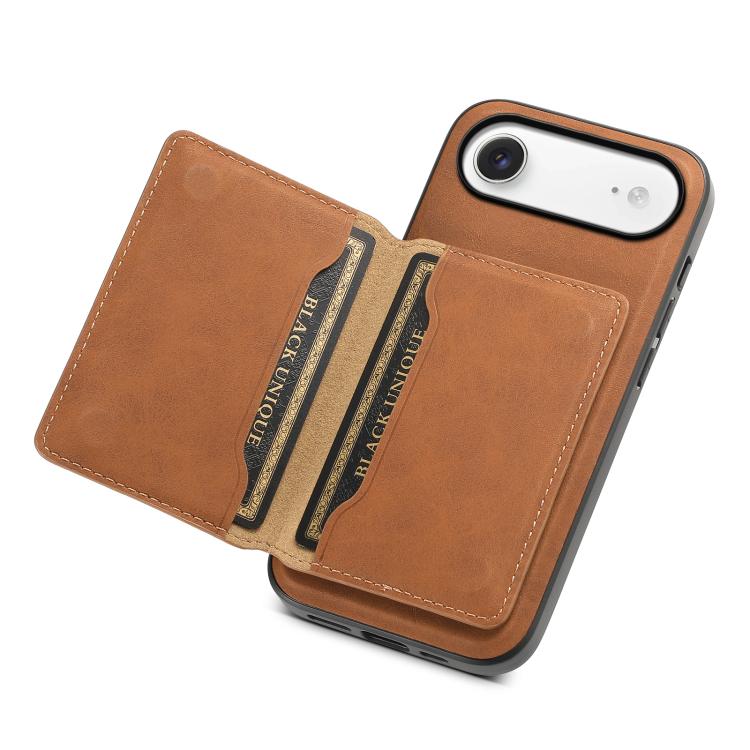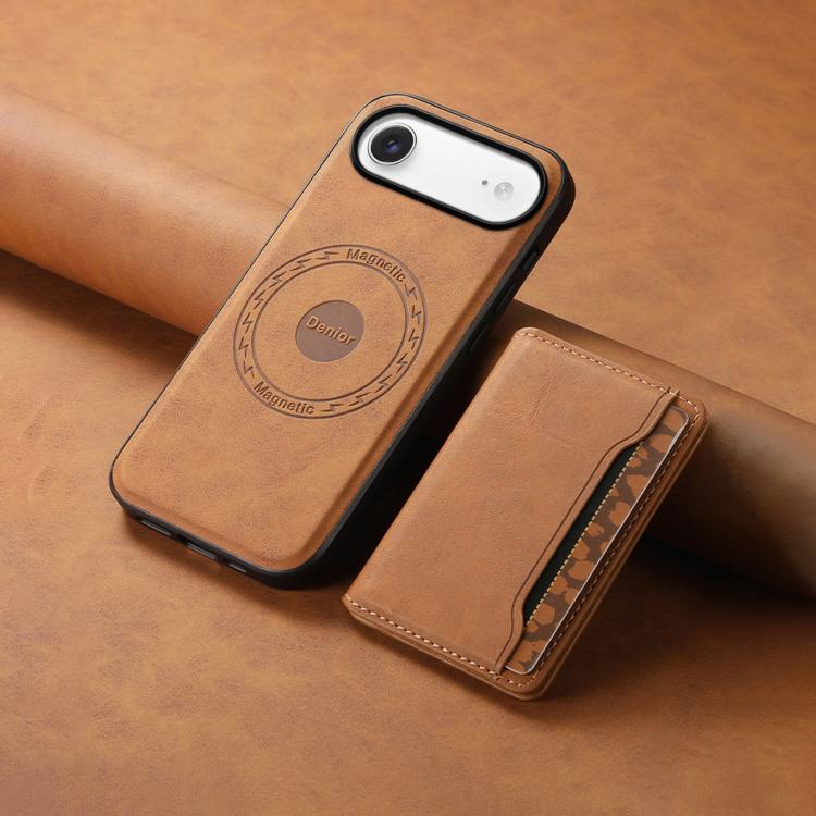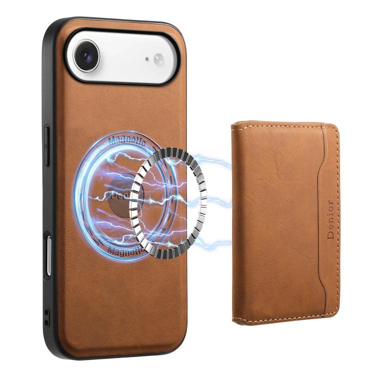 Funda de cuero con textura retro para iPhone Air Denior D13, con tarjetero MagSafe (marrón)