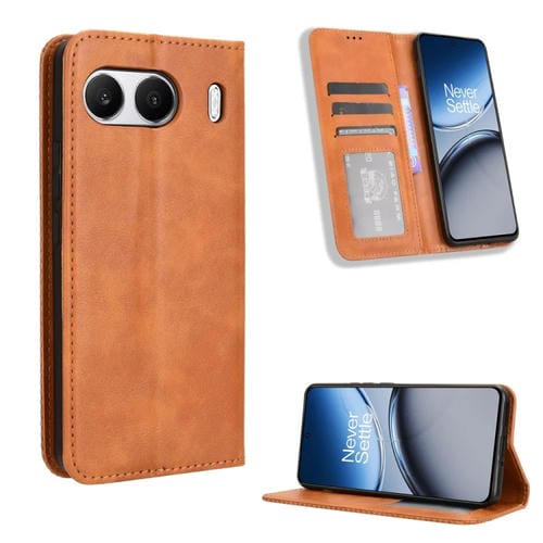 Funda de Cuero con Textura Retro y Hebilla Magnética para OnePlus Nord 4 5G (Marrón)