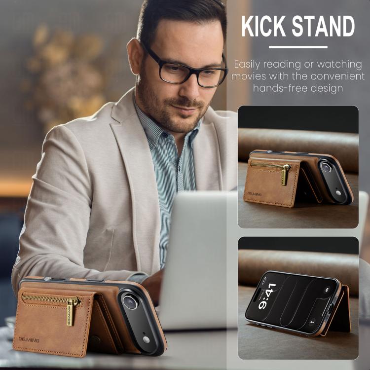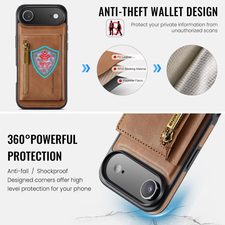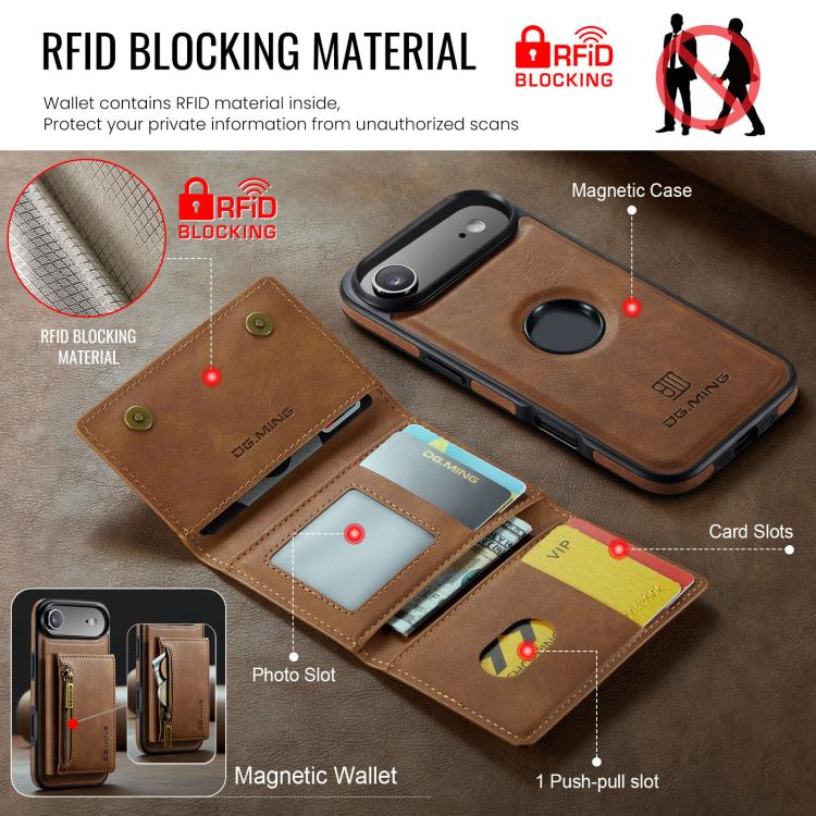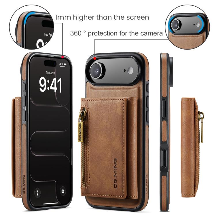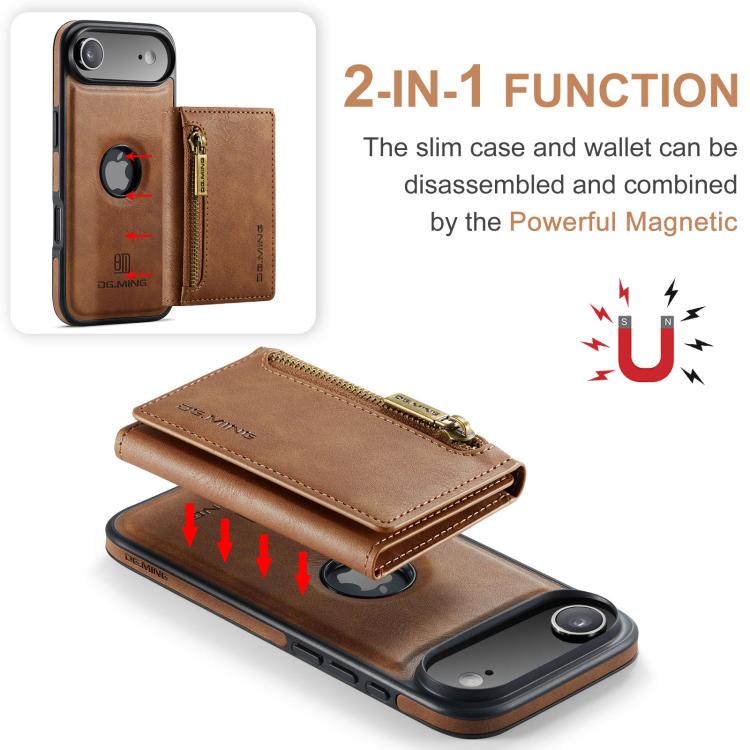 Funda de cuero desmontable con cremallera RFID para iPhone Air DG.MING M5 Series (marrón)
