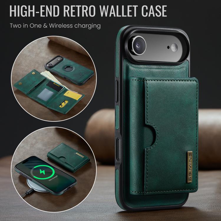Funda de cuero extraíble con tres pliegues RFID para iPhone Air DG.MING M6 Series (verde)