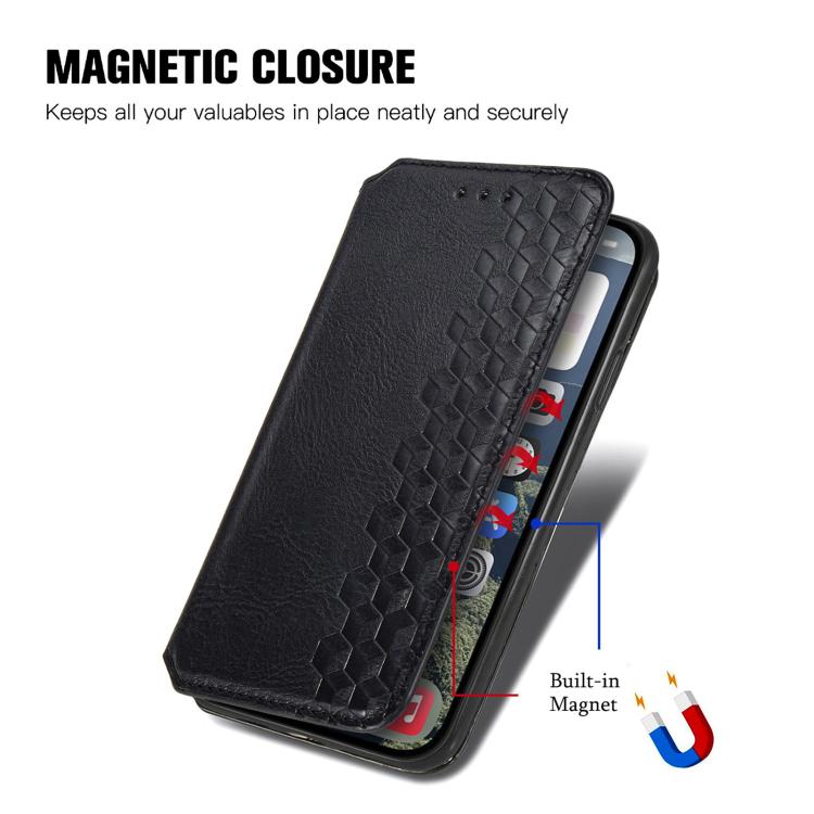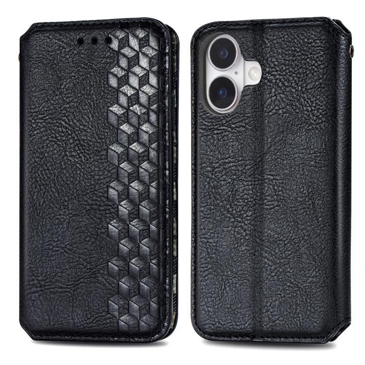Funda de cuero magnética con diseño de cuadrícula cúbica para iPhone 17 (negra)