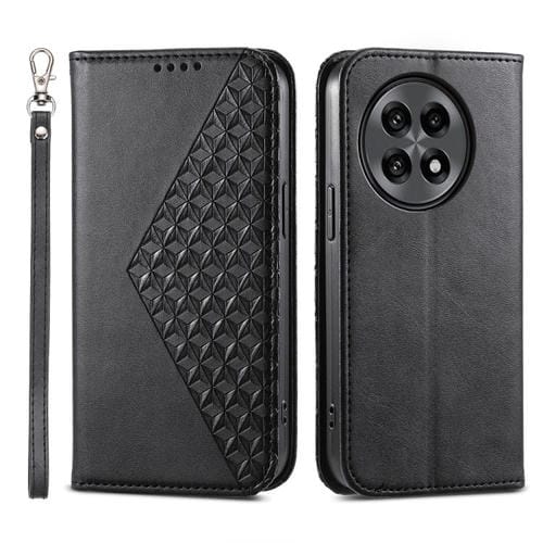 Funda de Cuero Magnética con Textura de Becerro y Cuadrícula para OnePlus 13R / Ace 5 / Ace 5 Pro (Negro)