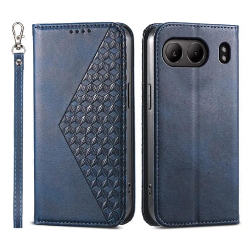 Funda de Cuero Magnética OnePlus Nord 4 5G Textura Piel de Becerro Cuadrícula Cúbica (Azul)