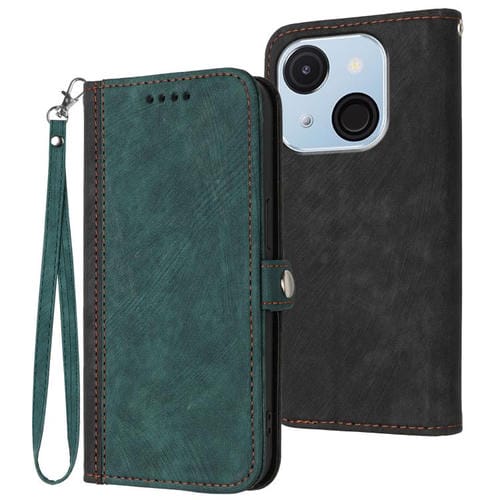 Funda de Cuero para Itel A50C con Correa de Mano y Hebilla Lateral Doble Plegable (Verde Oscuro)