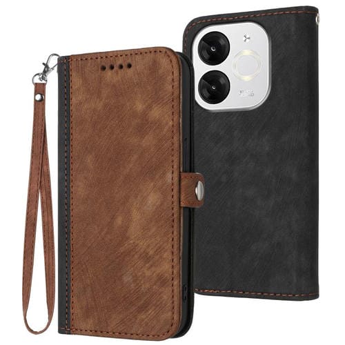 Funda de Cuero para Teléfono Itel A80 con Correa de Mano y Hebilla Doble Plegable (Marrón)
