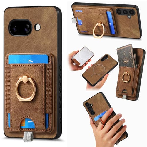 Funda de Cuero para Google Pixel 9A con Tarjetero Magnético Divisible Retro (Marrón)