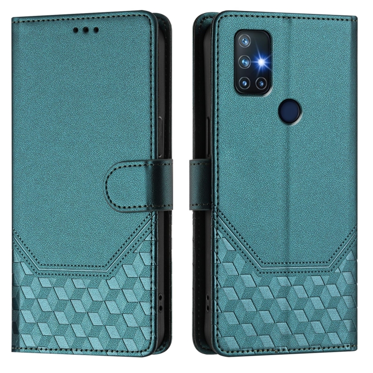 Funda de Cuero Rfid con Relieve de Panal para OnePlus Nord N10 5G (Verde Pavo Real)