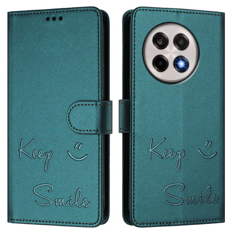 Funda de Cuero Rfid con Relieve Sonriente para OnePlus 13R Ace 5 Pro 5G (Verde Pavo Real)
