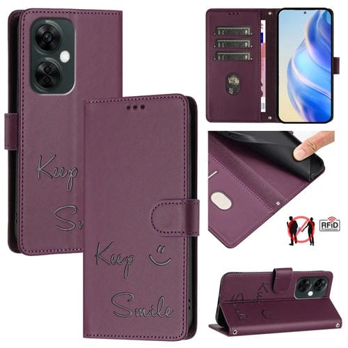 Funda de Cuero Rfid con Relieve Sonriente para OnePlus Nord Ce3 (Violeta)