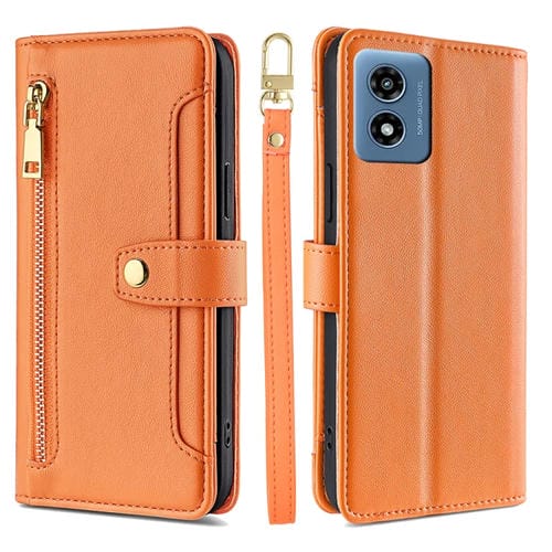 Funda de Cuero Tipo Billetera con Cremallera para Motorola Moto G 5G 2024 (Naranja)