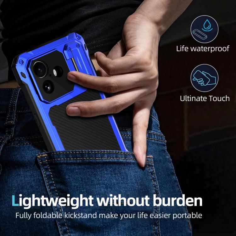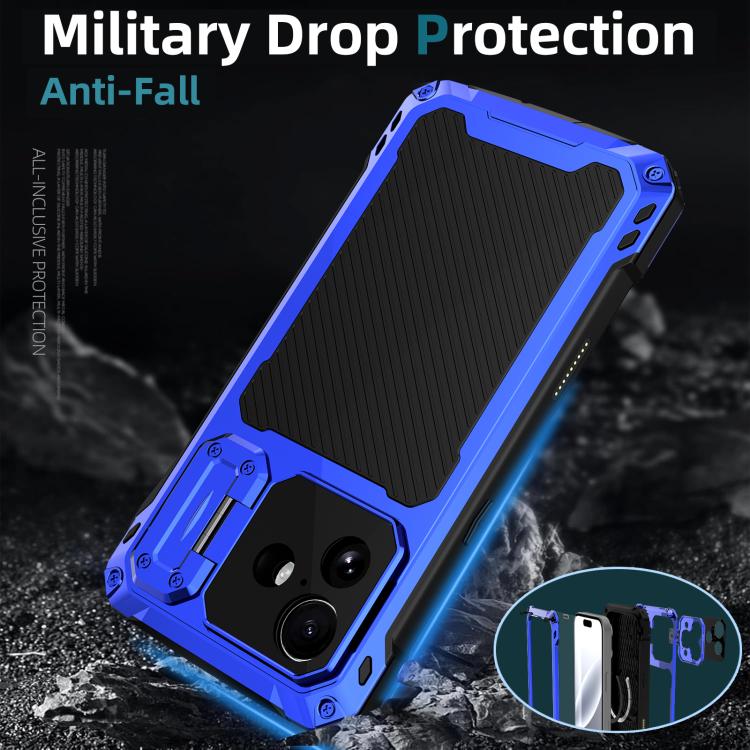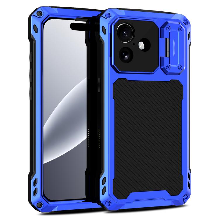Funda de metal con soporte para lente de iPhone 17, resistente al agua IP54, triple protección MagSafe (azul)