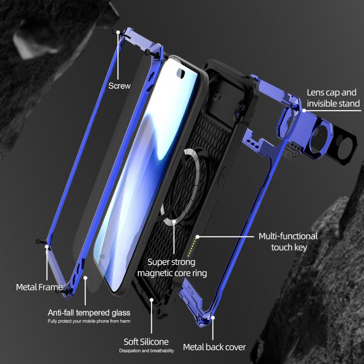 Funda de metal con soporte para lente de iPhone Air, resistente al agua IP54, con triple protección MagSafe (azul)