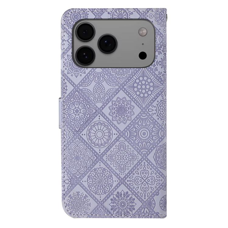 Funda de piel con estampado étnico en relieve para iPhone 17 Pro Max (morado)