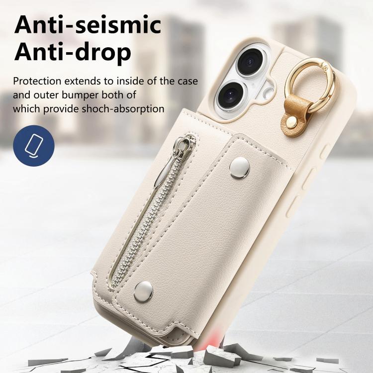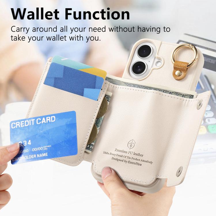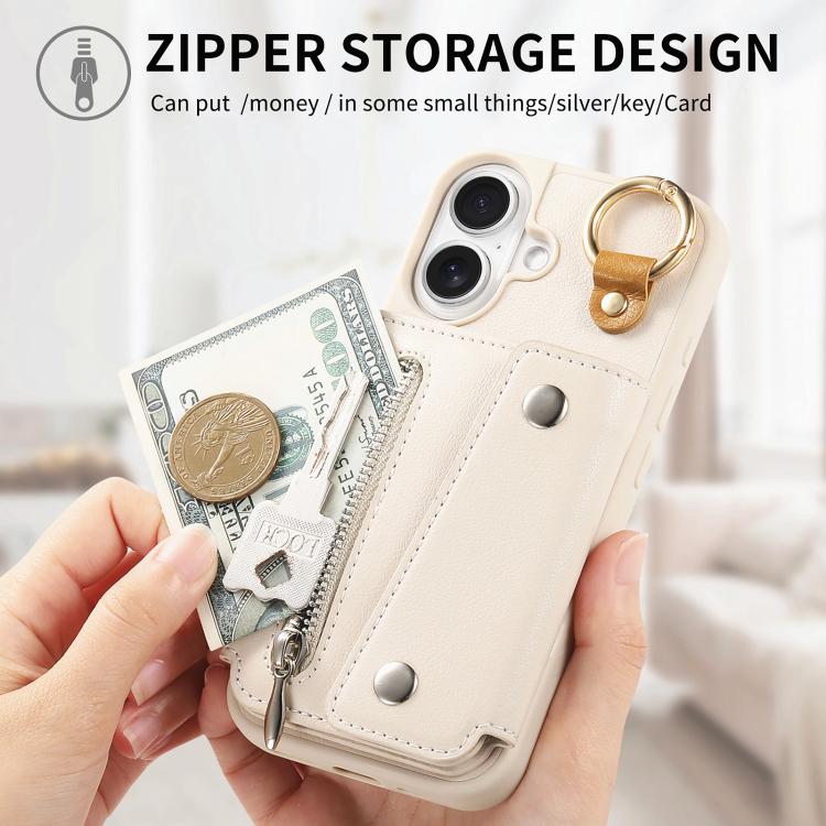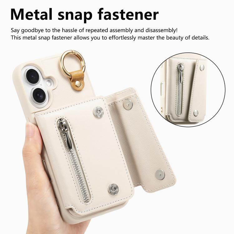 Funda de piel con hebilla en forma de D para iPhone 17 (Beige)