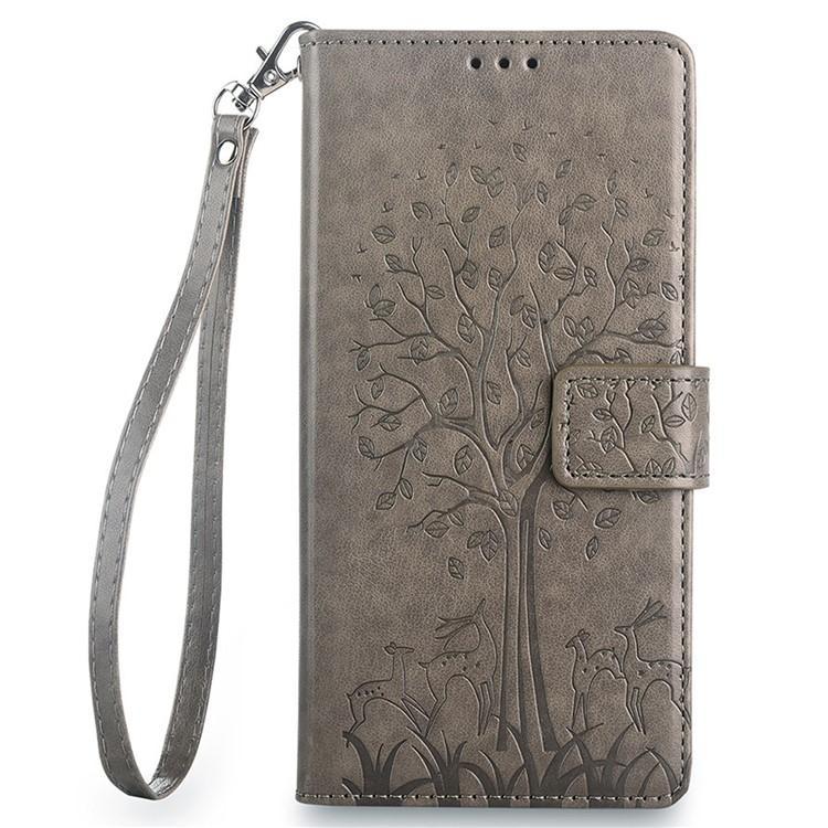 Funda de piel con relieve de árbol y ciervo para iPhone Air (gris)