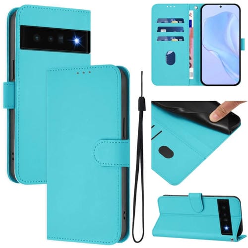 Funda de Piel para Google Pixel 6 Pro (Azul Lago) con Tacto Suave y Color Liso