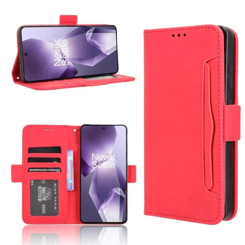 Funda de Piel Textura Becerro con Ranuras para Tarjetas para OnePlus Ace 5 5G / 5 Pro 5G / 13R 5G (Roja)