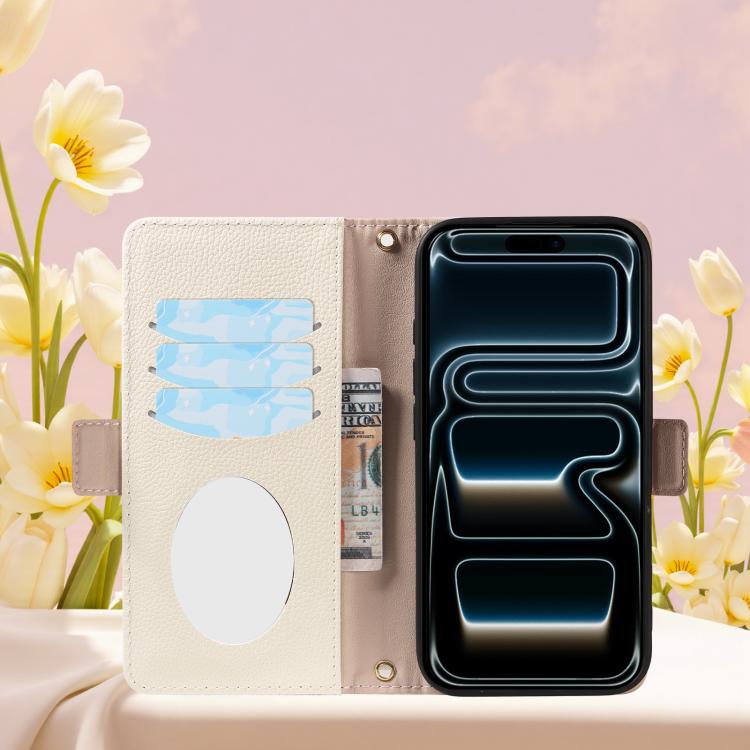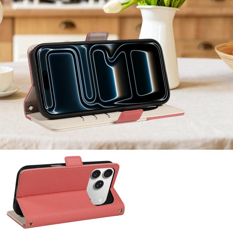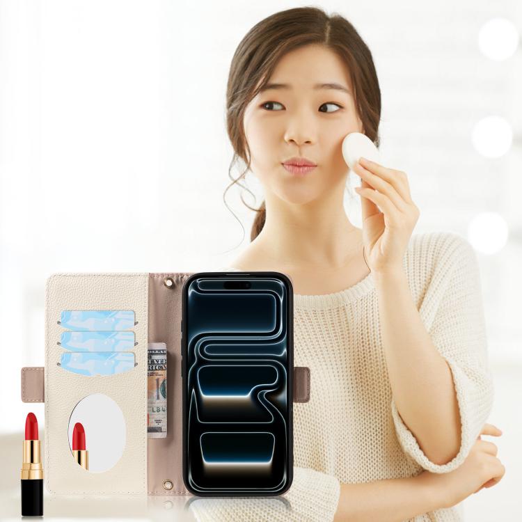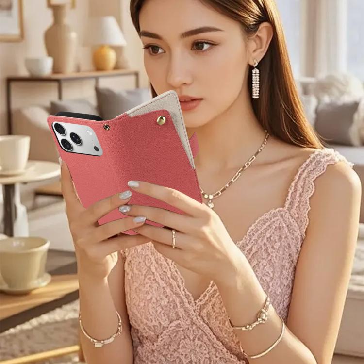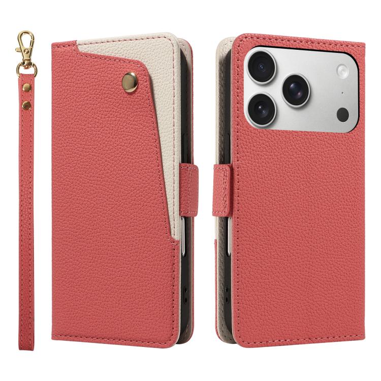 Funda de piel con textura de lichi y espejo para iPhone 17 Pro Max (Roja)