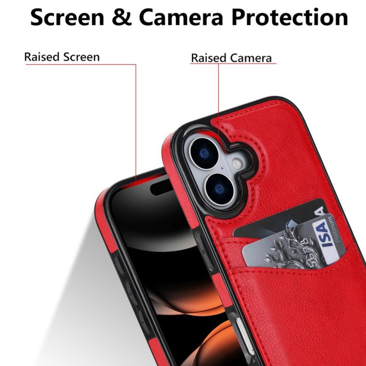 Funda de piel de lichi con ranuras para tarjetas para iPhone 17 (roja)