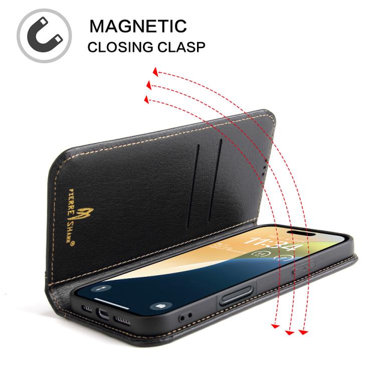 Funda de piel de vaca Fierre Shann con tapa para iPhone 17 (negra)