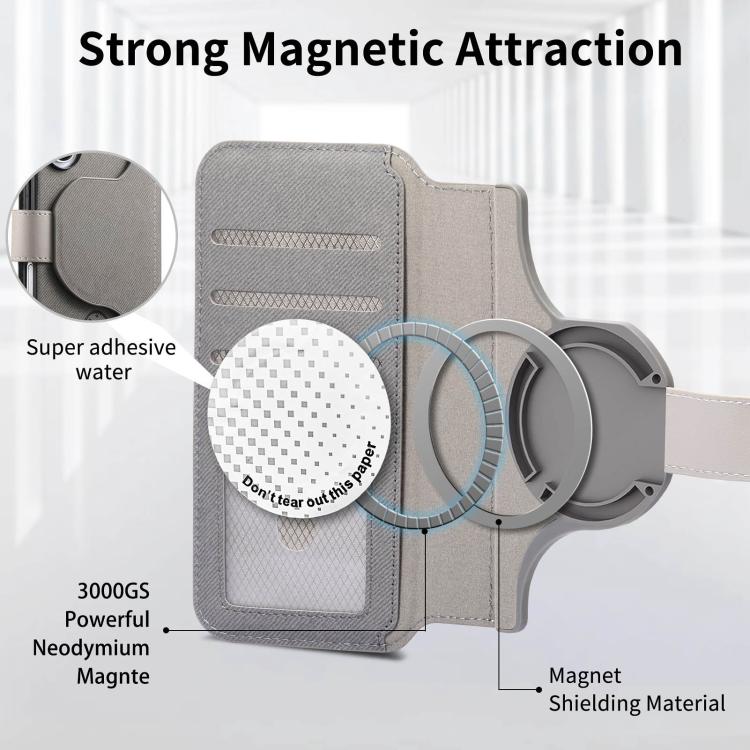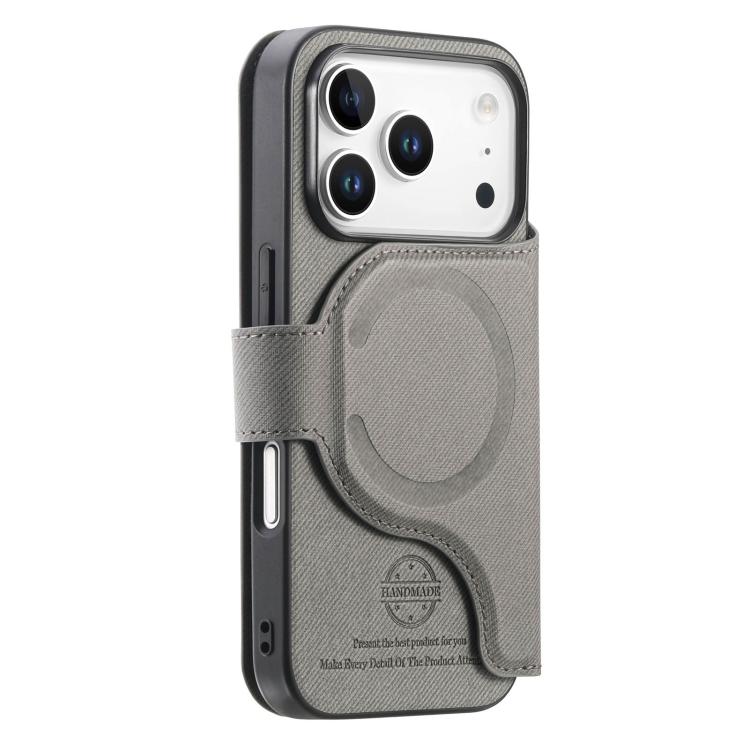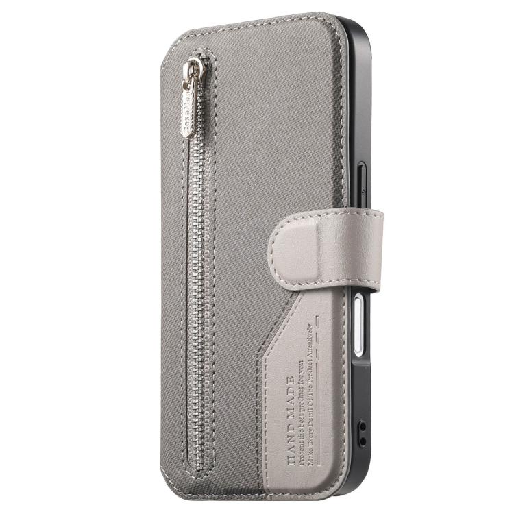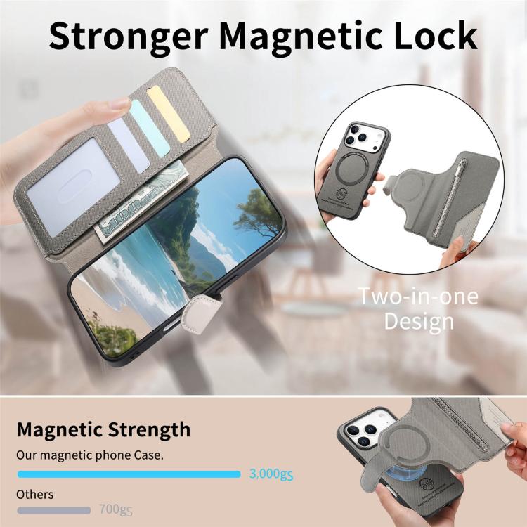 Funda de piel para iPhone 17 Pro, de tela de sarga, con MagSafe, RFID, antirrobo y cremallera (gris).