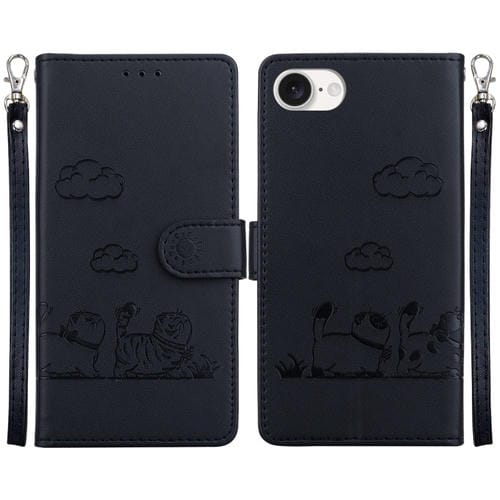 Funda de Cuero Rfid para iPhone 16E con Diseño de Gatos (Negra)