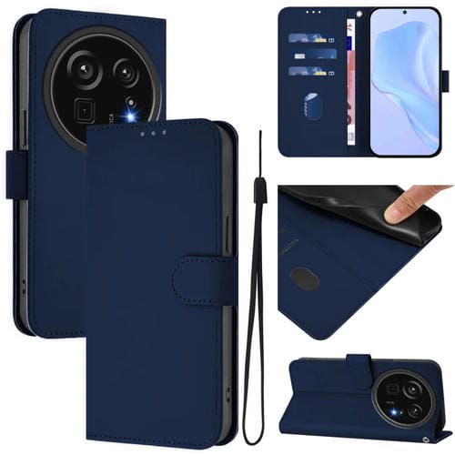 Funda de Piel Sintética con Cordón para Sharp Aquos R9 Pro Sh-54E (Azul Marino)