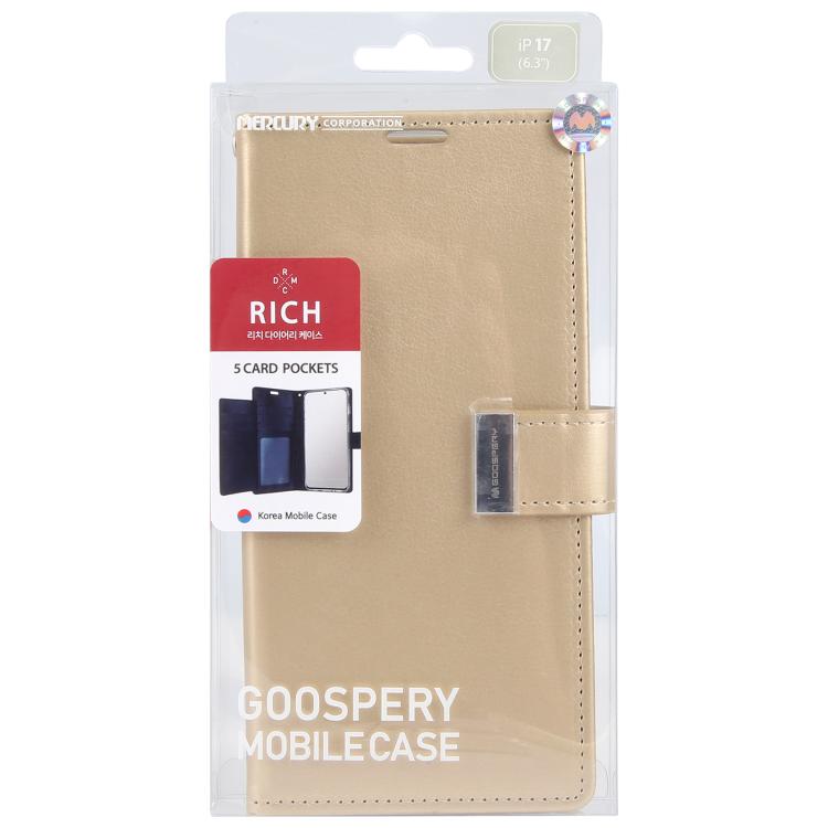 Funda de piel texturizada Crazy Horse para iPhone 17 GOOSPERY RICH DIARY (Dorada)