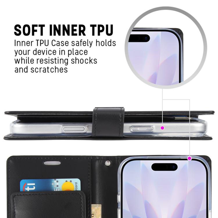 Funda de piel texturizada Crazy Horse para iPhone 17 GOOSPERY RICH DIARY (Negra)