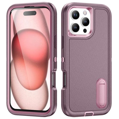 Funda para iPhone 16 Pro Max Silicona y Policarbonato con Soporte (Morado y Rosa)