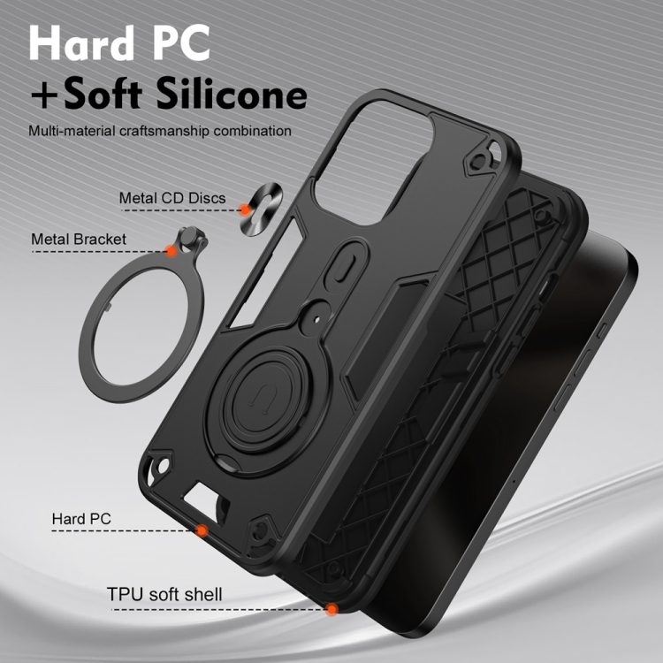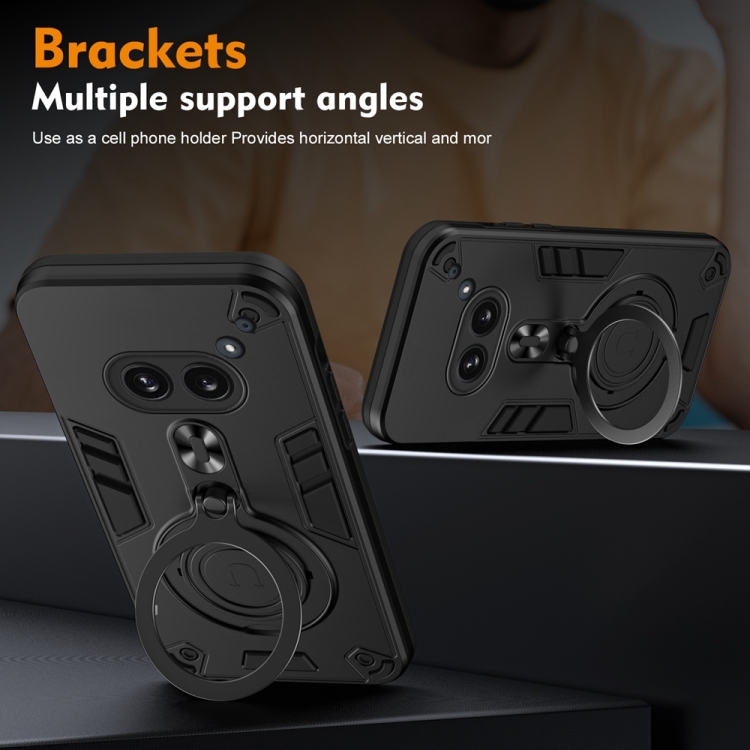 Funda de Teléfono PC + TPU con Soporte Giratorio 360° y Anillo Metal para Teléfono 2A (Negro)