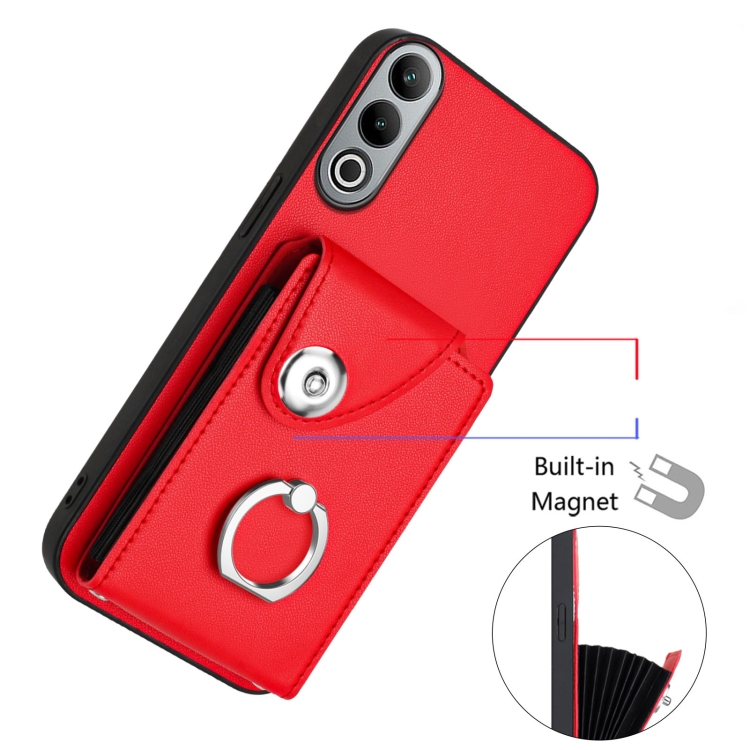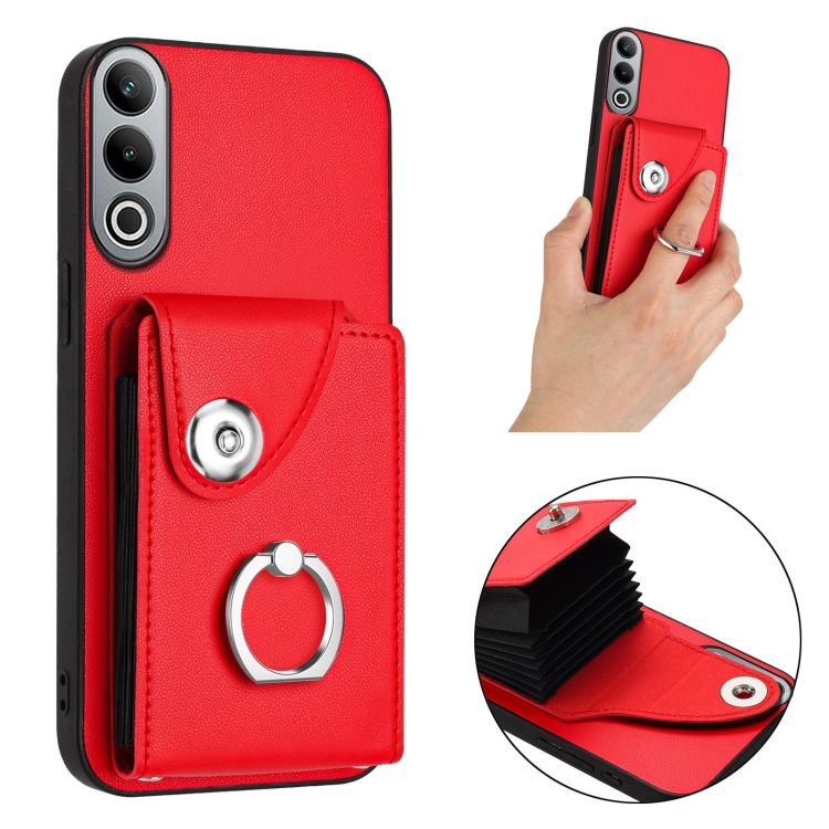 Funda de Teléfono PU con Tarjetero y Anillo para OnePlus Nord CE4 (Rojo)