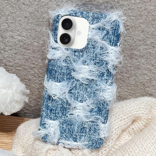 Funda TPU Felpa con Tejido a Rayas para iPhone 16 (Azul)