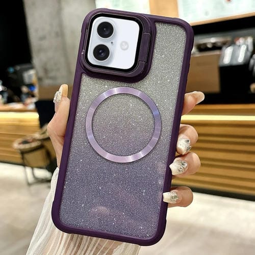 Funda híbrida Acrílico y TPU con Purpurina y Degradado de Grano de Cd para iPhone 16 Plus (Morado)