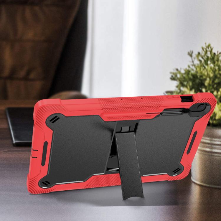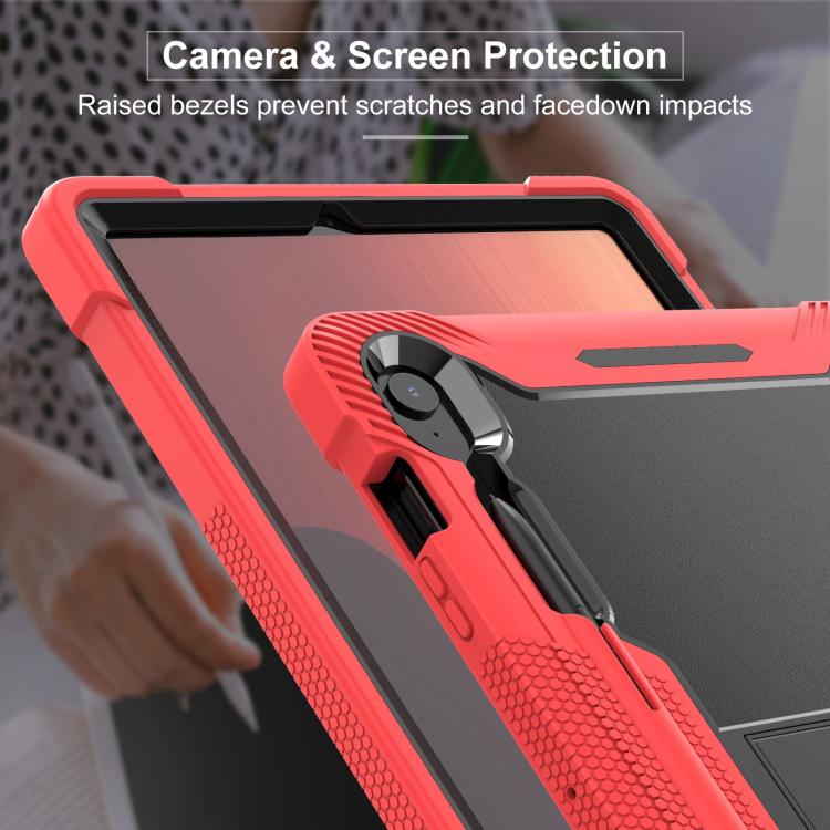 Funda híbrida de silicona a prueba de golpes para Samsung Galaxy Tab S10 FE+ con soporte (negro y rojo)