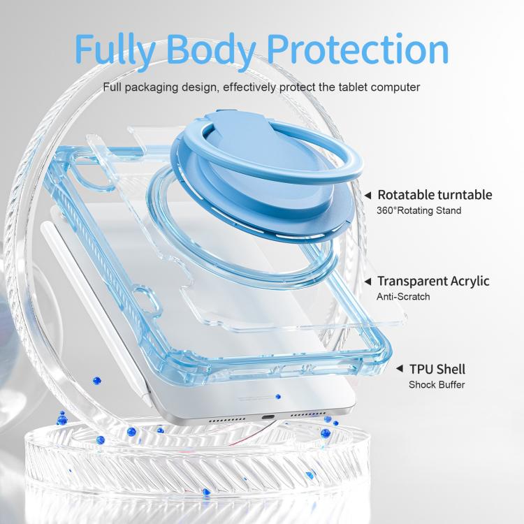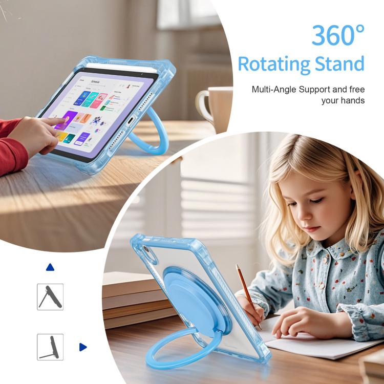 Funda híbrida TPU para iPad Mini 2024/Mini 6 con Asa de Anillo Giratorio (Azul Claro)