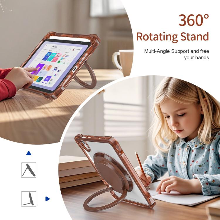 Funda Híbrida TPU para iPad Mini 2024/Mini 6 con Asa de Anillo Giratorio (Chocolate)