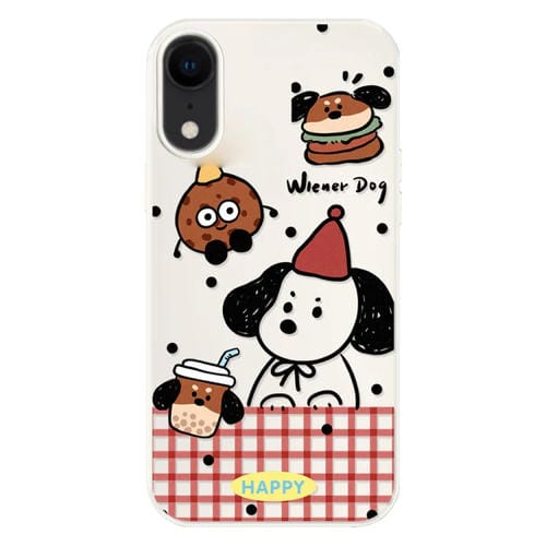 Funda híbrida TPU y Policarbonato iPhone Xr Tacto Sedoso (Beige) Diseño Perro Salchicha Hamburguesa