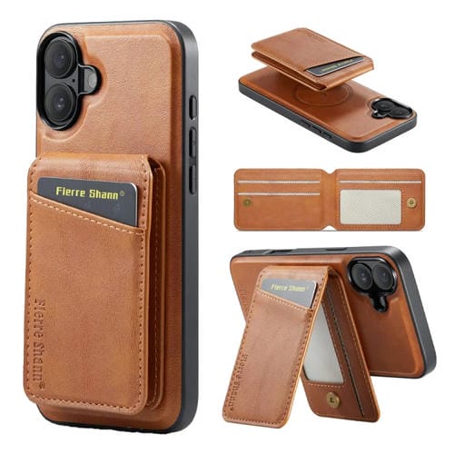 Funda para iPhone 16 Fierre Shann TaRJetero Magnético Piel de Vaca con Cera de Aceite (Marrón)