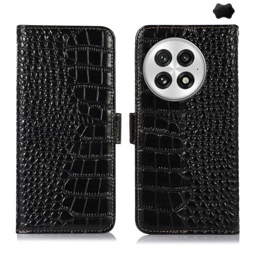 Funda para Teléfono OnePlus Nord 13 con Capa Superior de Piel de Vaca y Cocodrilo (Negra)