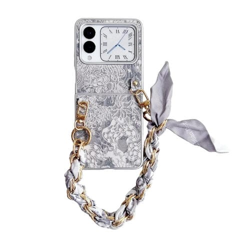 Funda para Huawei Nova Flip con Bordado DIY Cobertura Total con Bufanda y Pulsera (Gris)