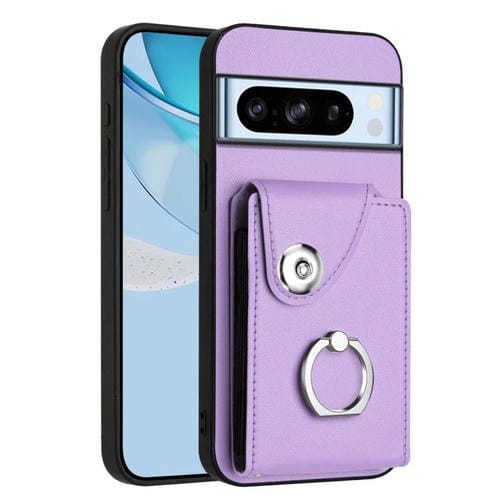 Funda para Teléfono Google Pixel 8 Pro con Soporte Tarjetas y Anillo (Morado)