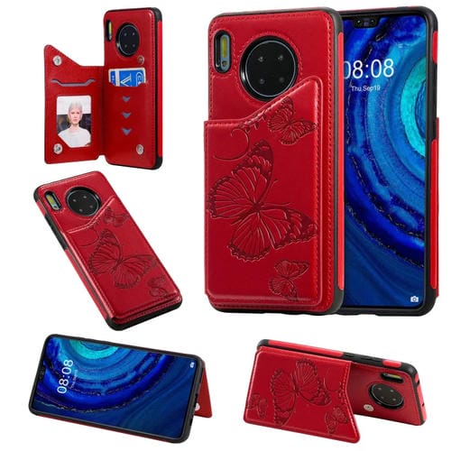 Funda Protectora Huawei Mate30 Patrón Relieve Mariposa Soporte Ranuras Tarjetas Marco Fotos (Rojo)