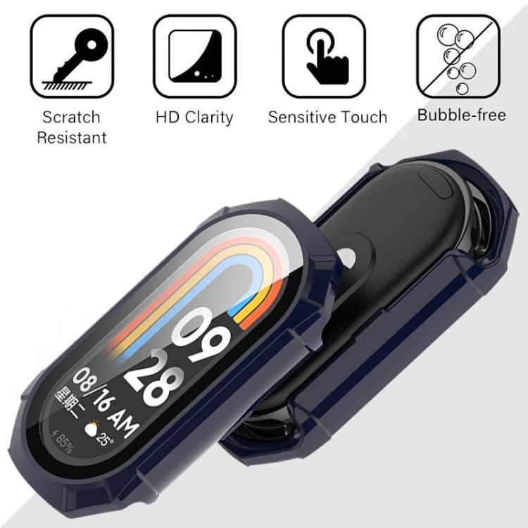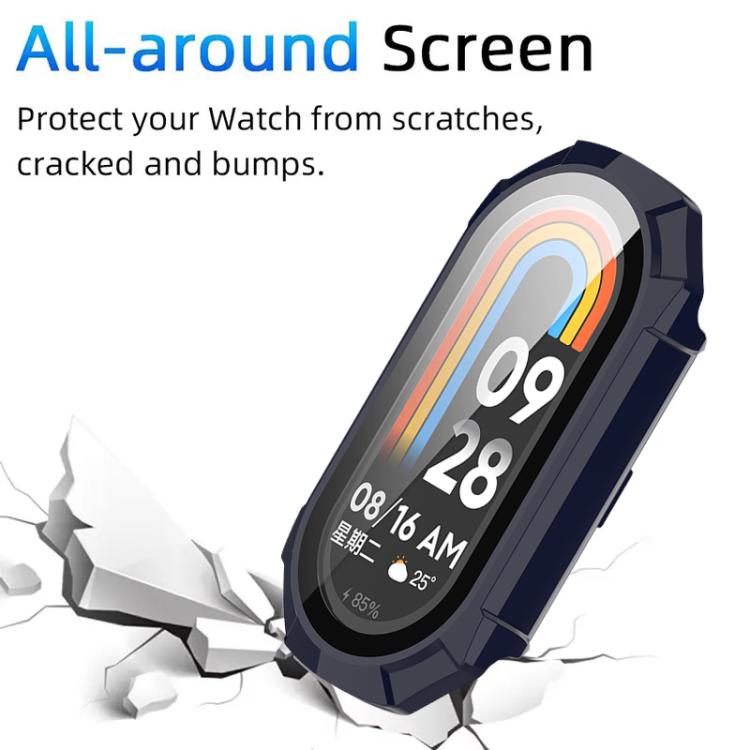 Funda protectora de PC integrada para Xiaomi Smart Band 9 de cerámica/8 xDfind Armor con película templada (azul tinta)