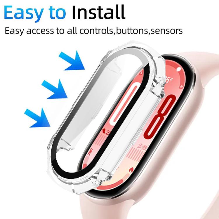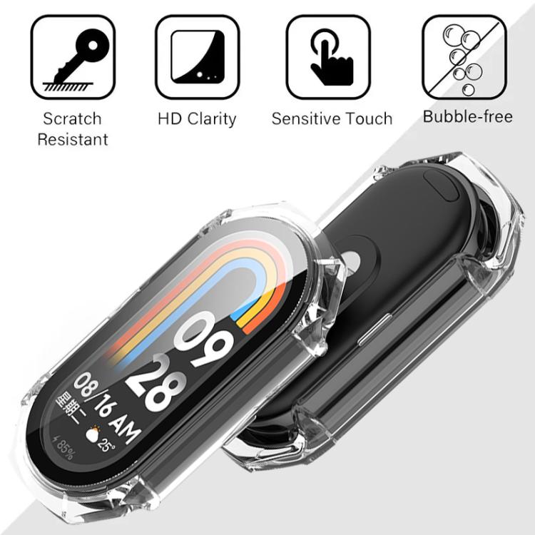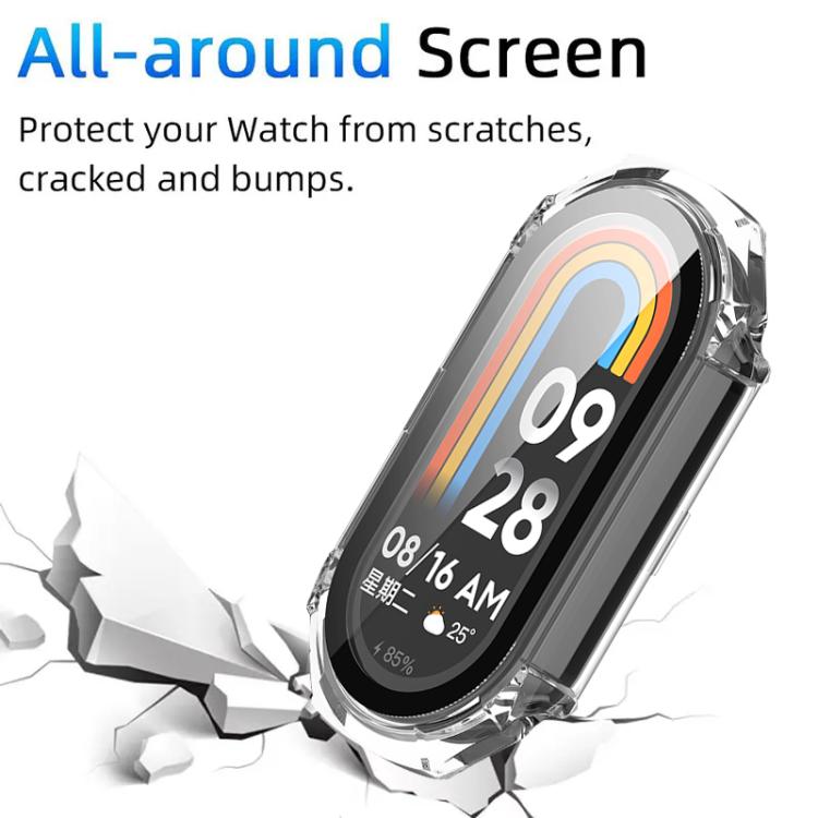 Funda protectora para Xiaomi Smart Band 9/9 NFC xDfind Armor con película templada integrada para PC (blanco transparente)